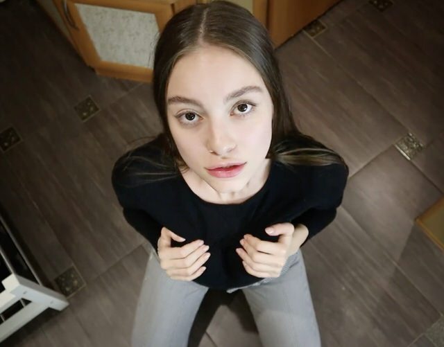 Наташа вернулась домой поздно и по недовольному лицу своего мужа поняла, что объясняться за свое поведение ей придется очень долго. Поэтому девушка не стала тратить время на бесполезные разговоры, а сразу встала на колени и принялась задабривать бойфренда оральными ласками его полового органа. Мужик в это время не только наслаждался процессом, но и снимал все происходящее на камеру от первого лица. Также он не упустил возможности развернуть девушку, загнуть раком и как следует оттрахать, отодвинув в сторону ее трусики.