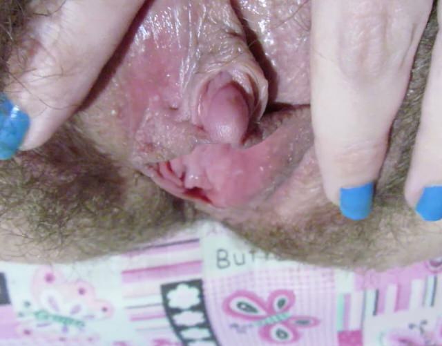 Волосатая пизда и клитор мастурбирующей телки - крупным планом